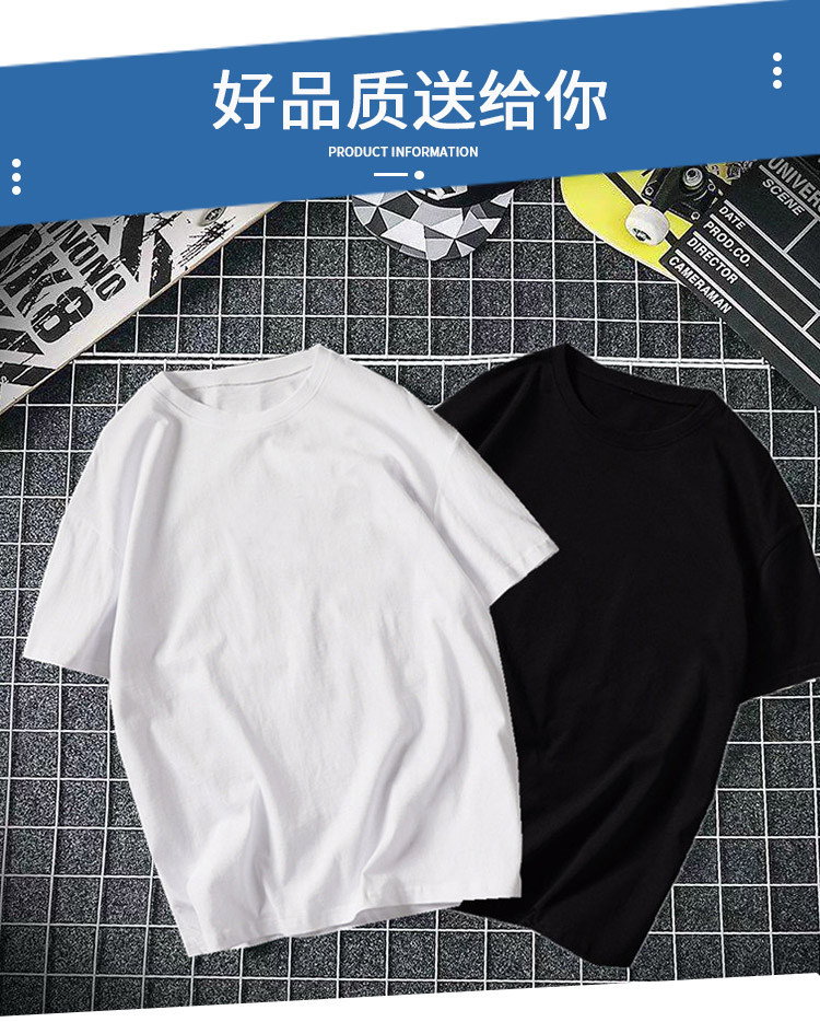 【100%純棉】2021春季爆款t恤男士韓版簡約純色短袖圓領T恤男