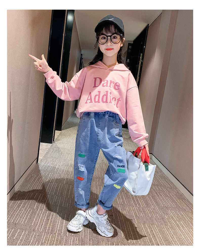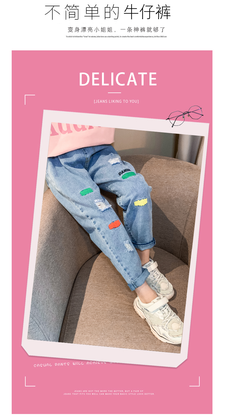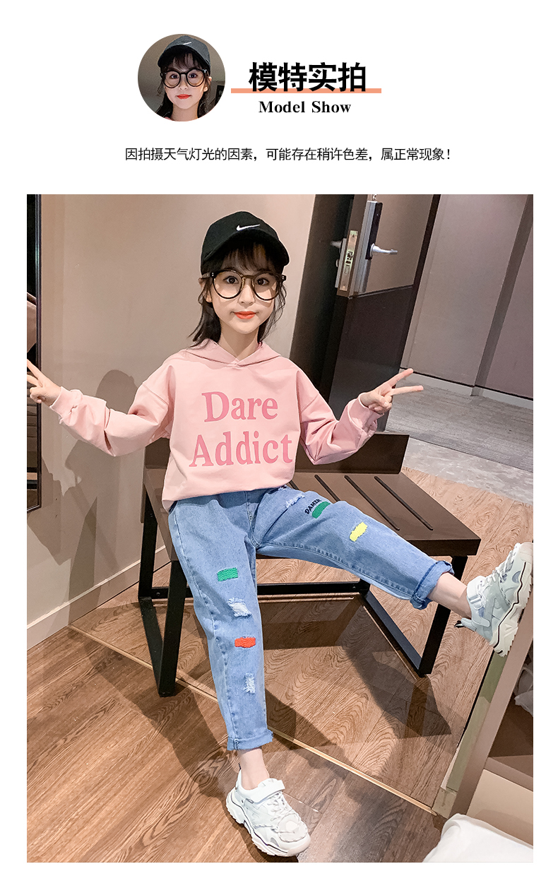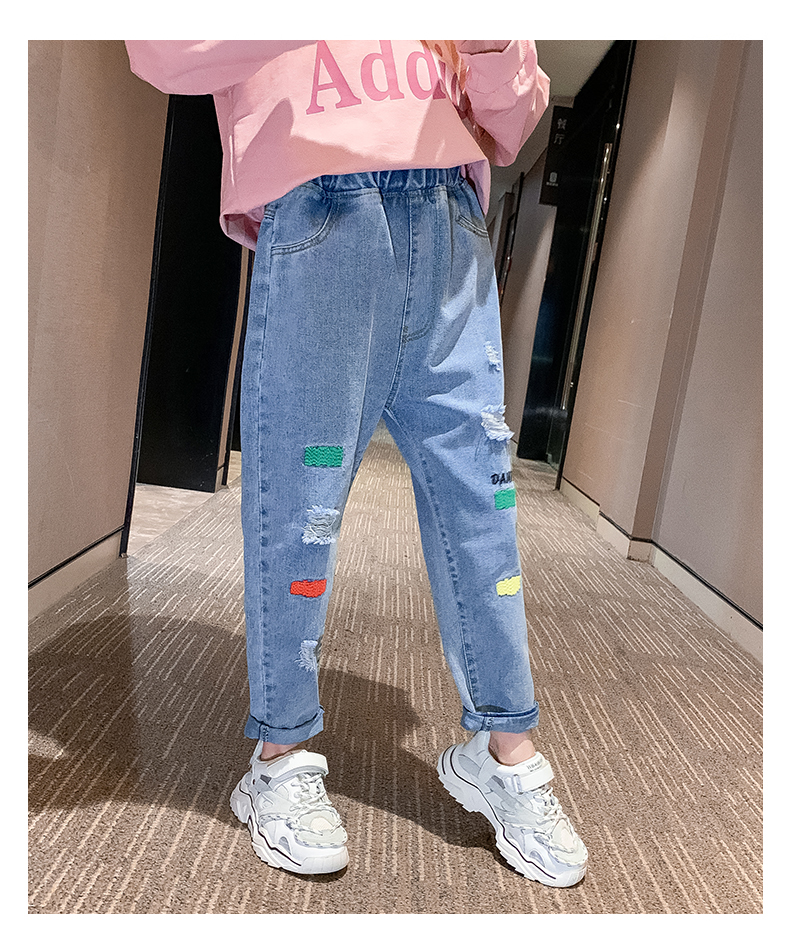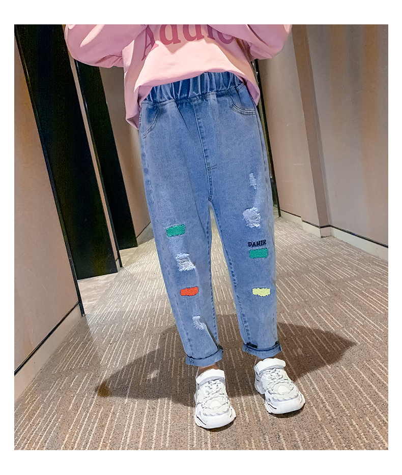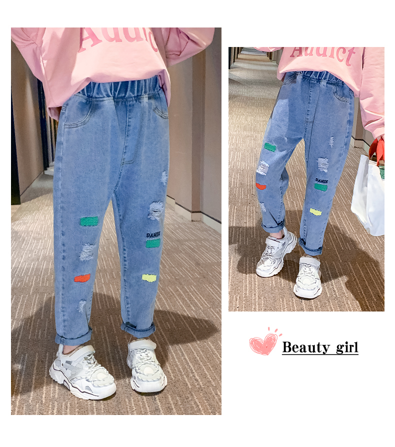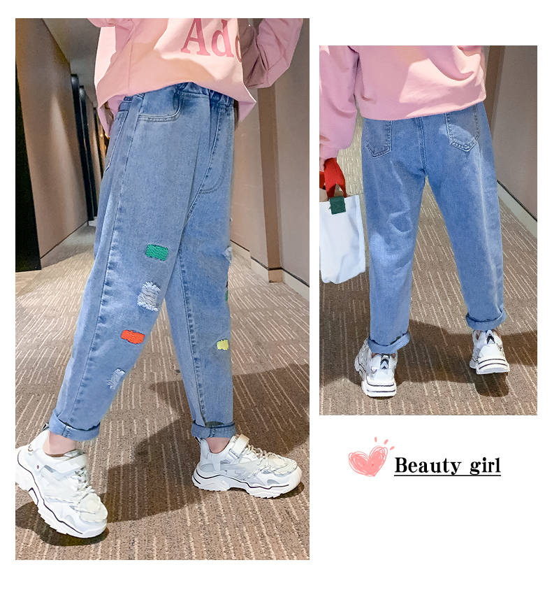 浪莎女童褲子春秋中大童洋氣寬松牛仔褲韓版女兒童裝春秋款休閑褲
