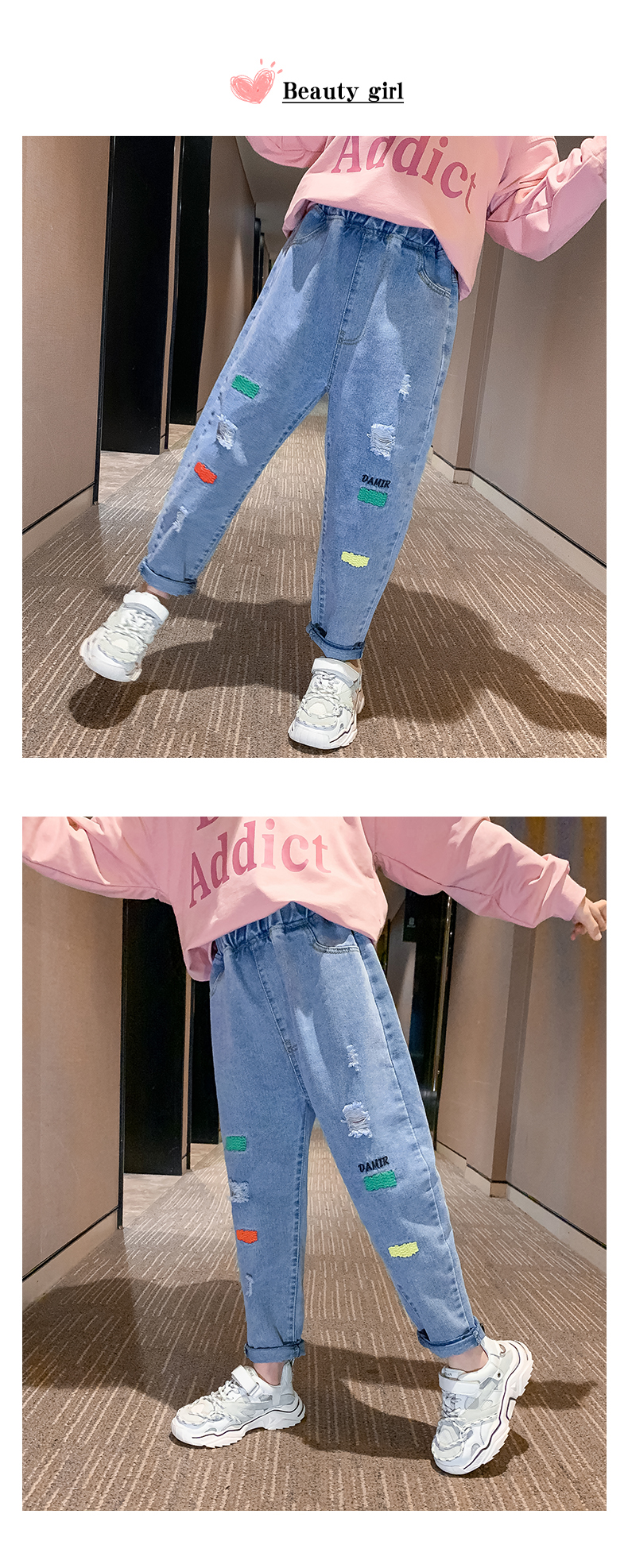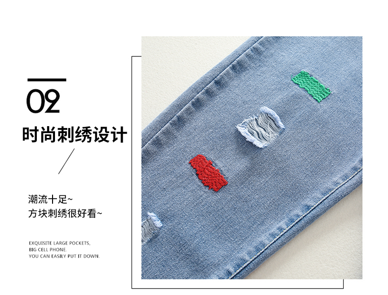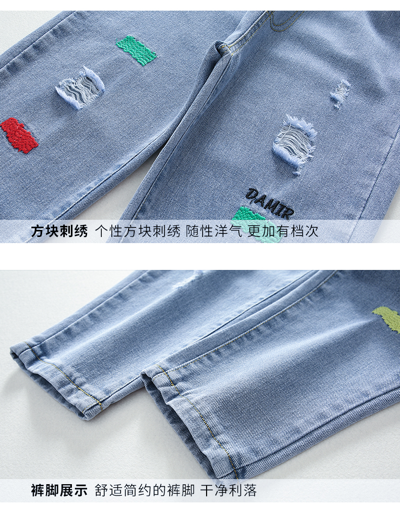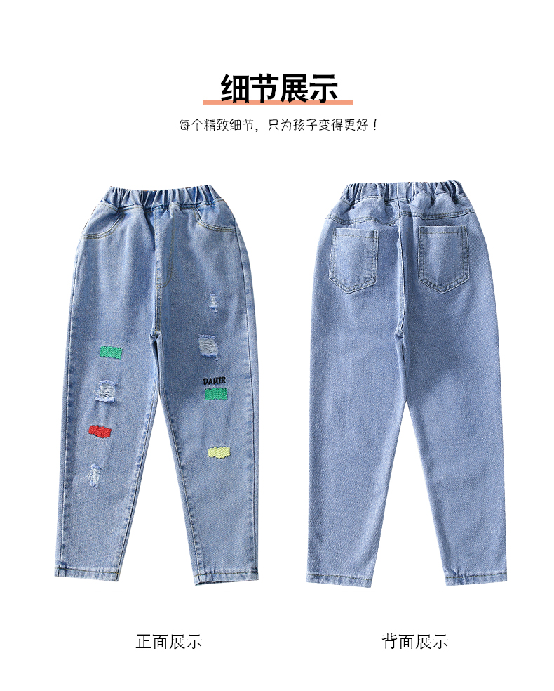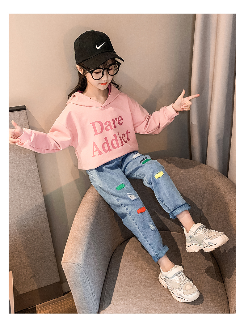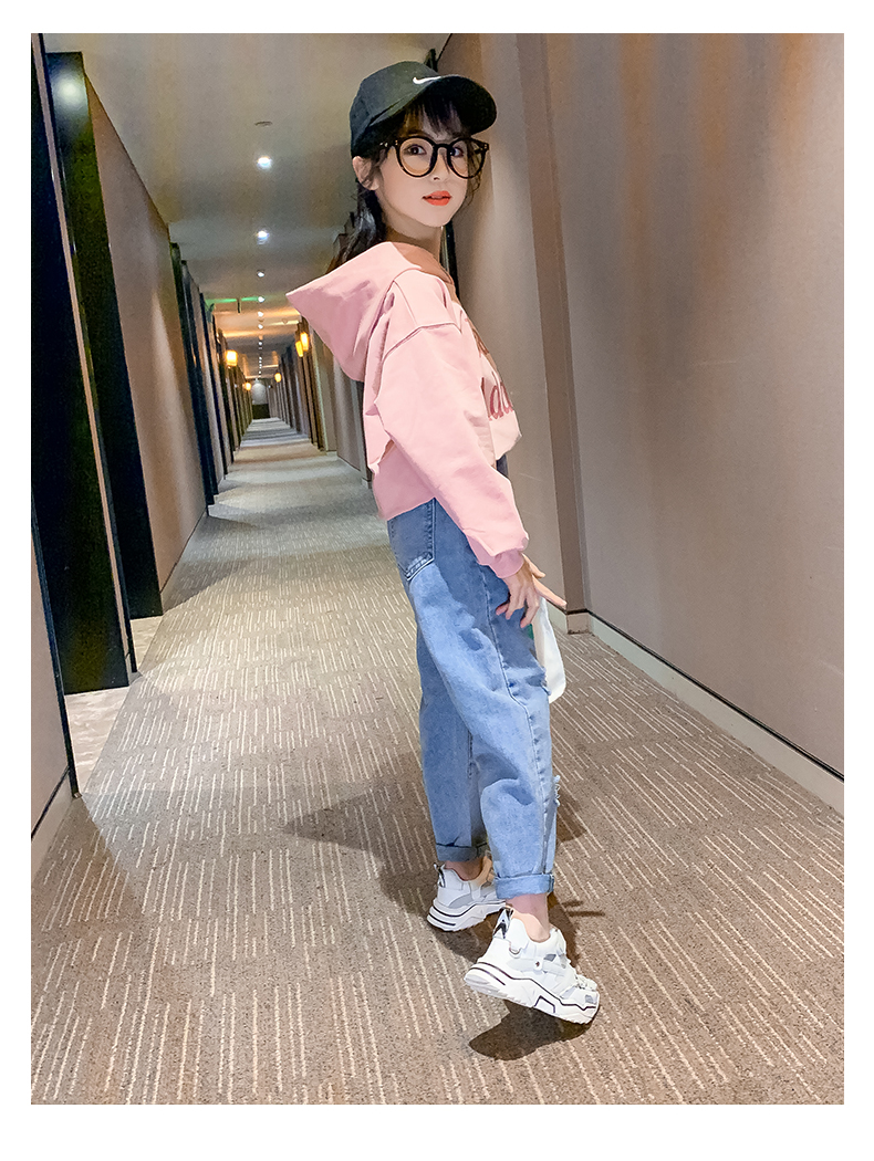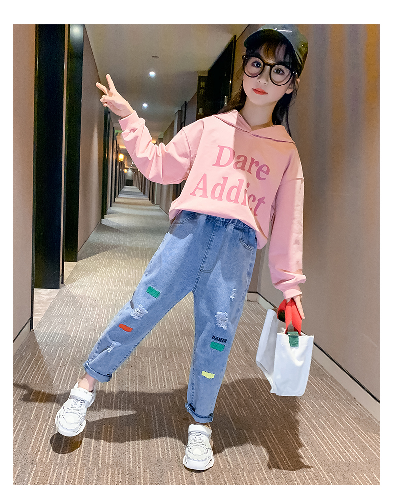 浪莎女童褲子春秋中大童洋氣寬松牛仔褲韓版女兒童裝春秋款休閑褲