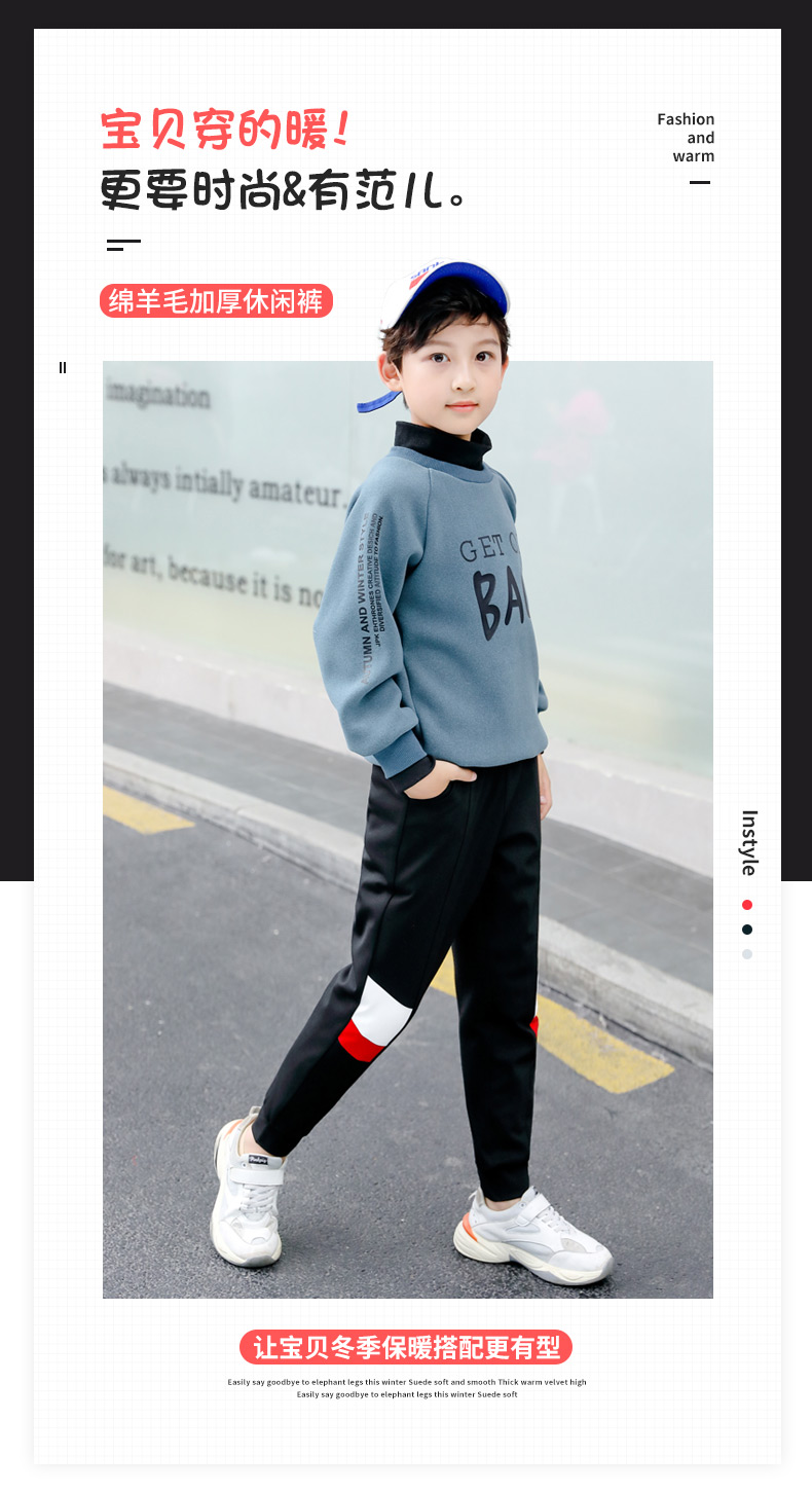 浪莎童裝男童羊毛外穿棉褲秋冬季加絨加厚中大童寶寶保暖運(yùn)動褲子