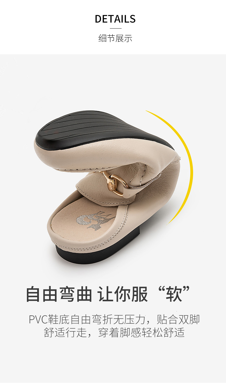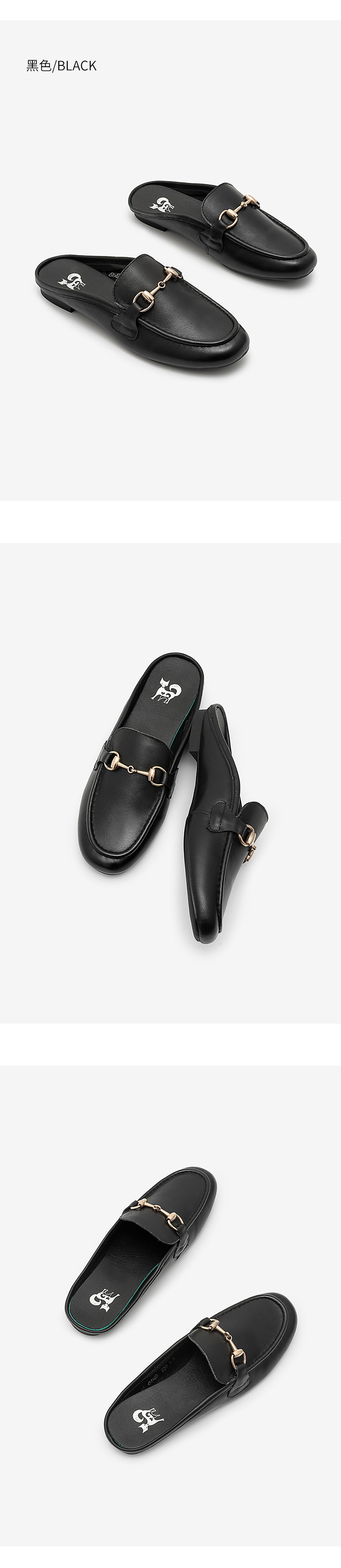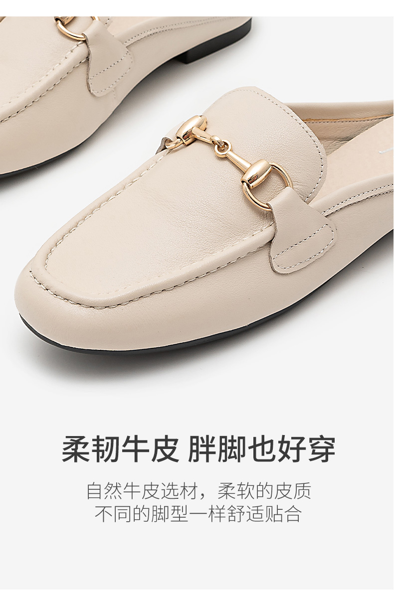 浪莎包頭拖鞋女夏外穿2021春真皮平底半拖鞋粗跟圓頭搭扣穆勒涼拖