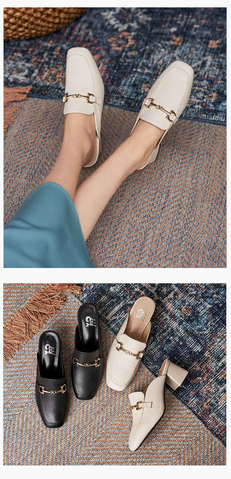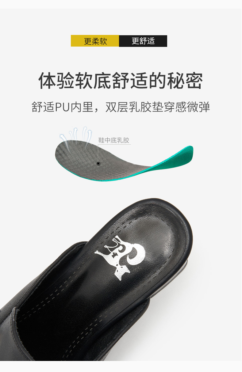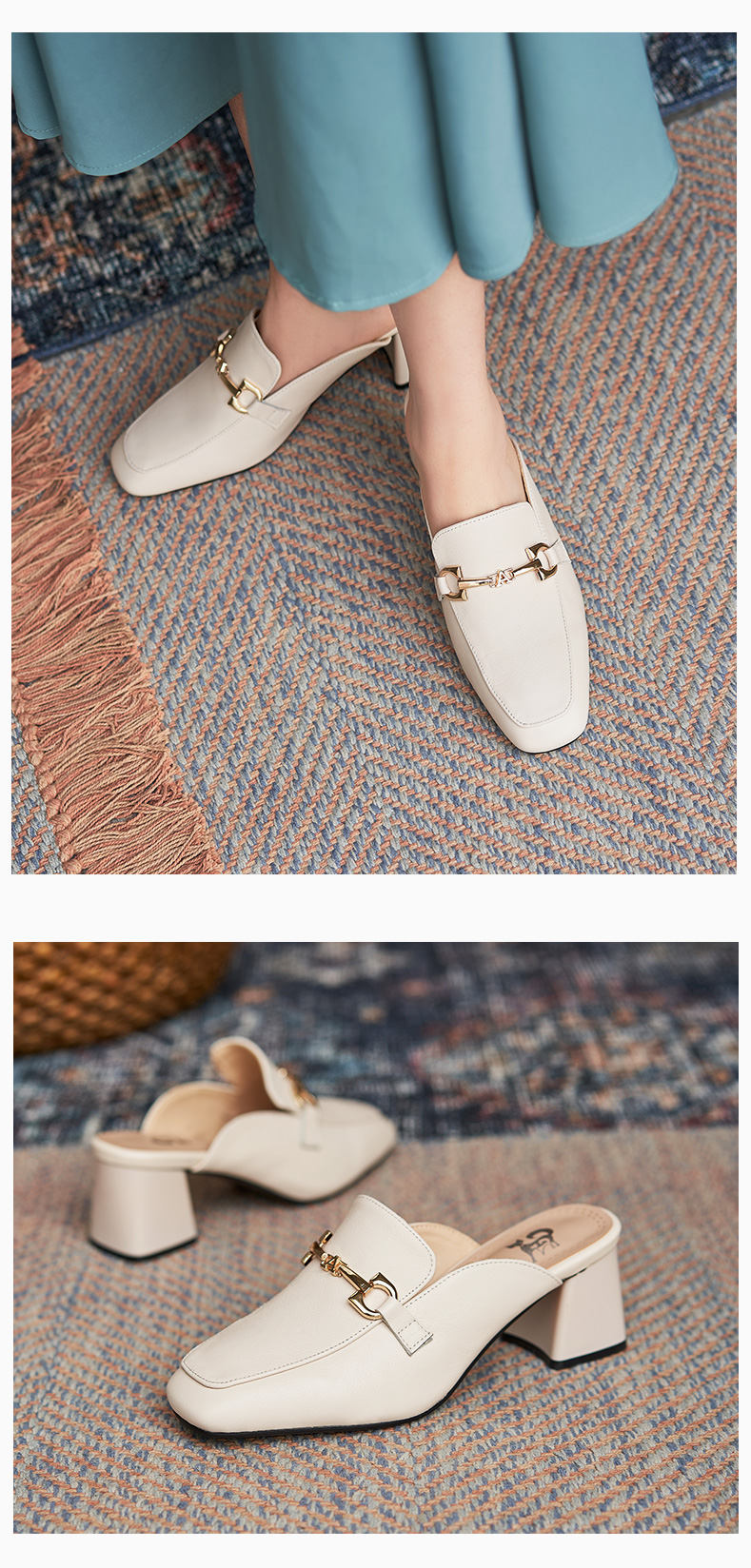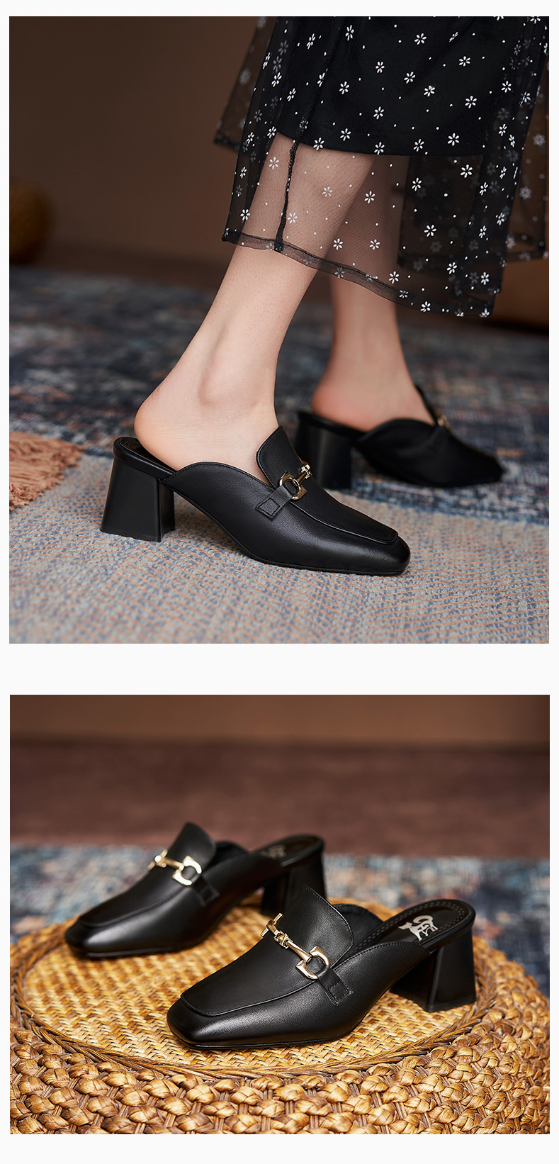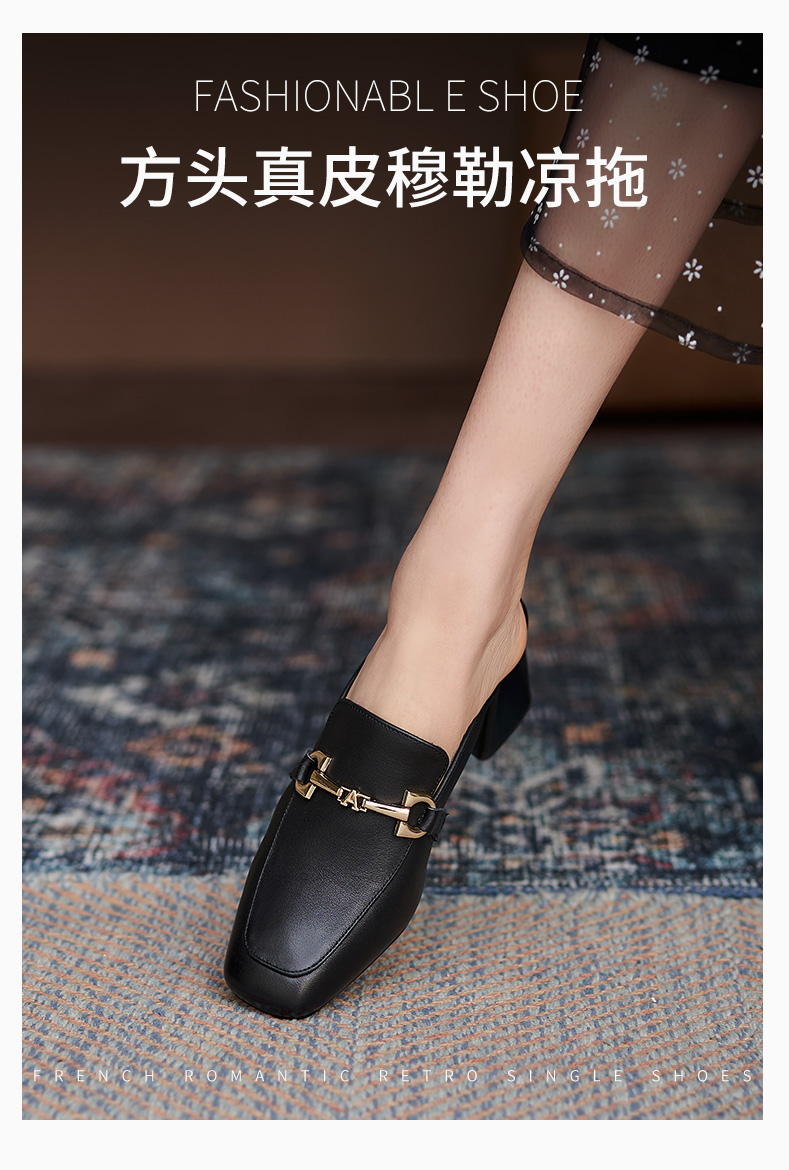 包頭半拖鞋女2021年一腳蹬女鞋夏時(shí)尚穆勒鞋真皮高跟方頭外穿涼拖
