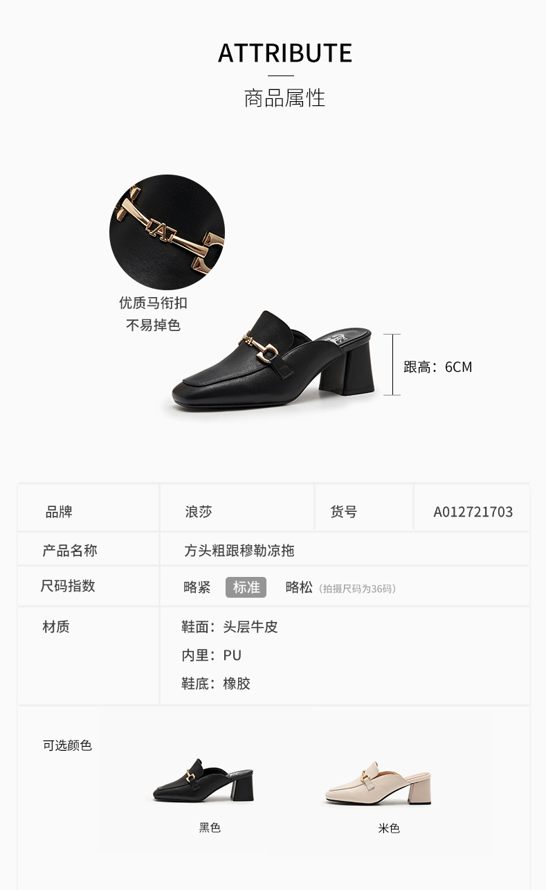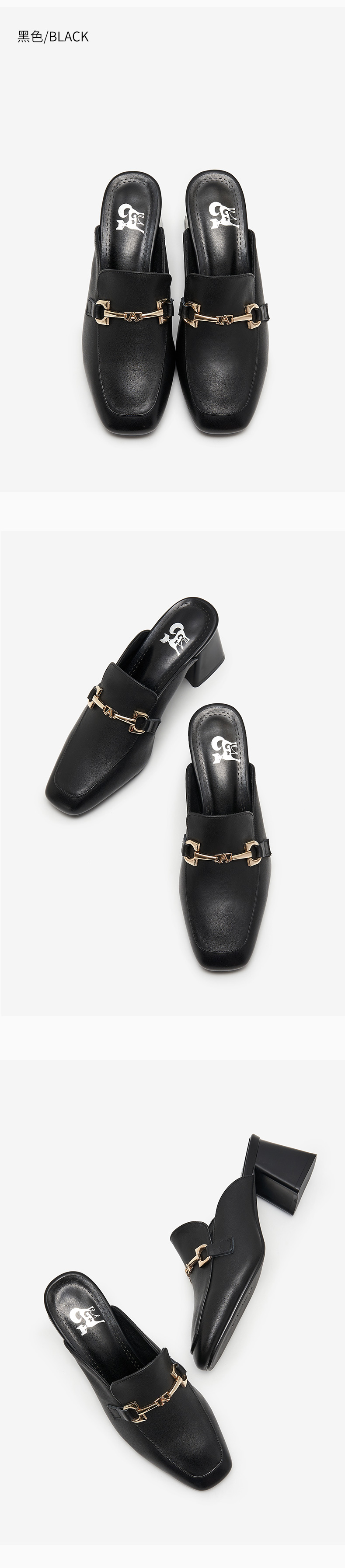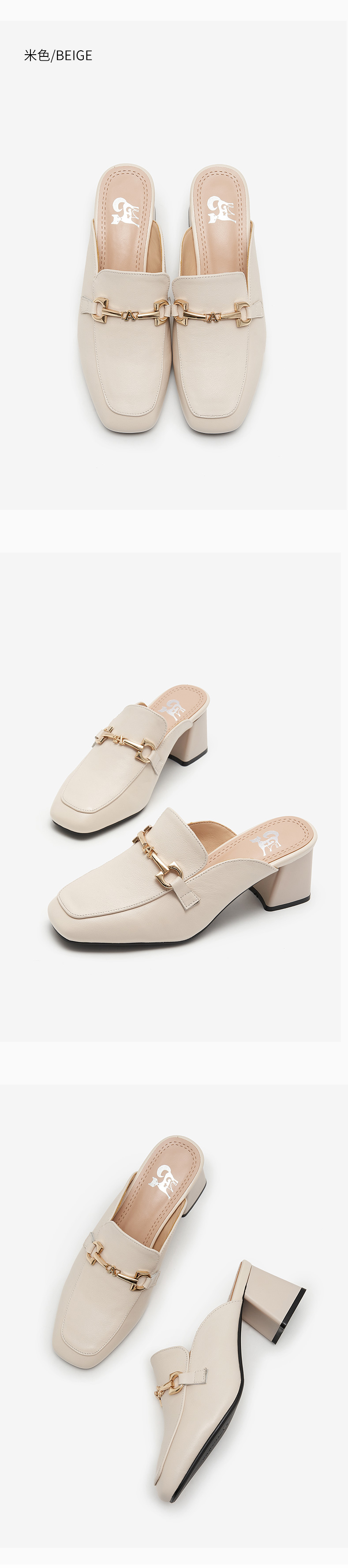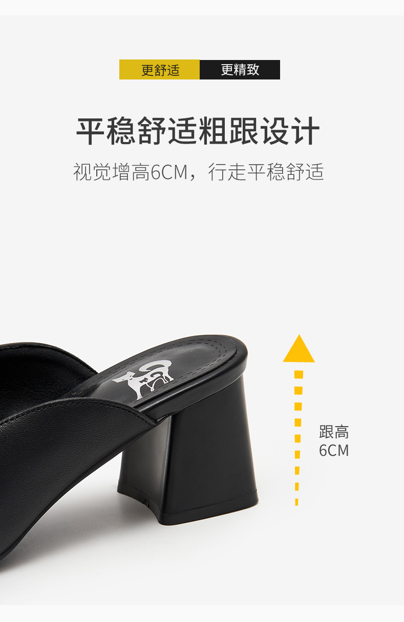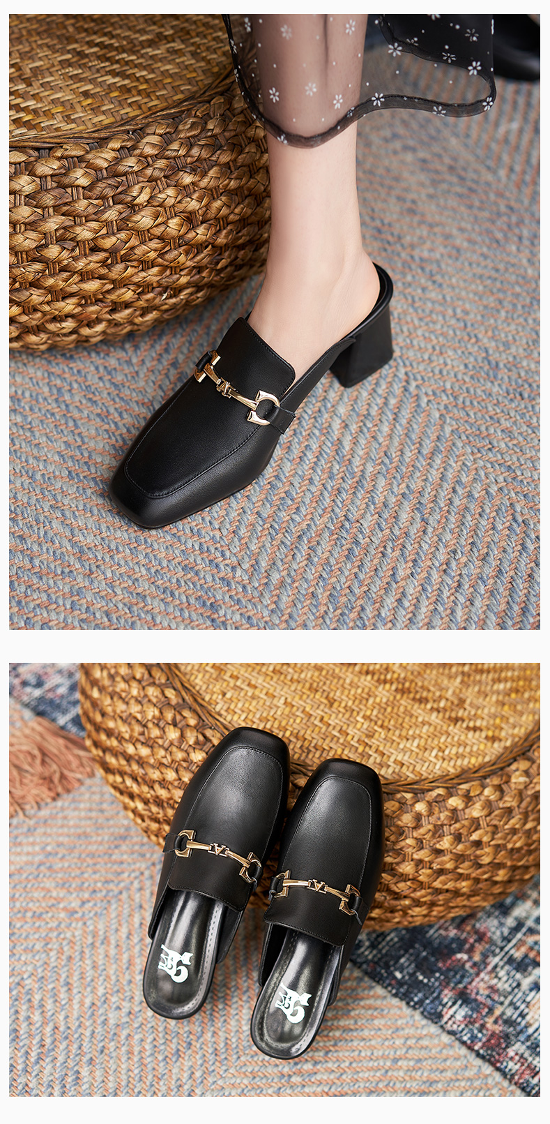 包頭半拖鞋女2021年一腳蹬女鞋夏時(shí)尚穆勒鞋真皮高跟方頭外穿涼拖