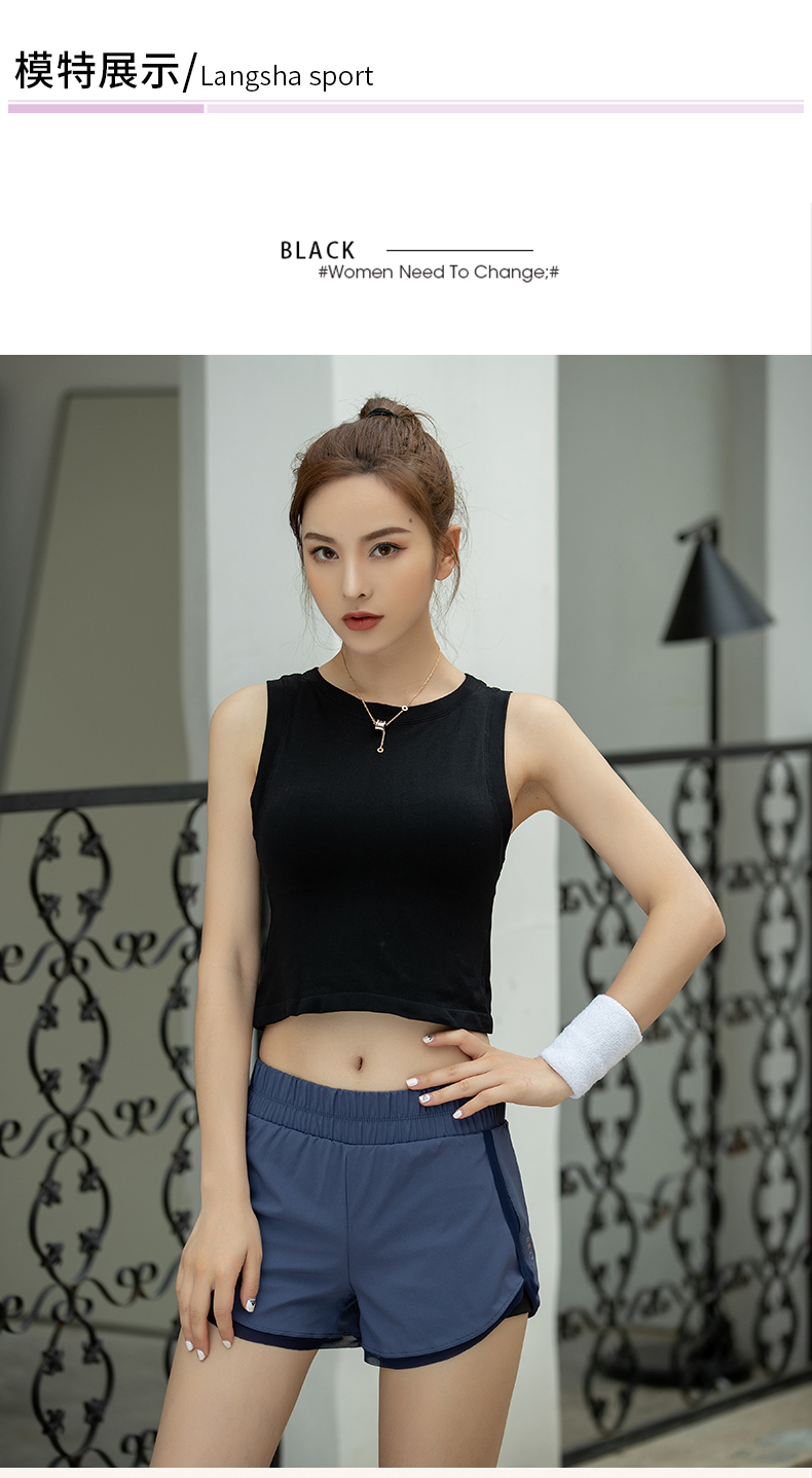 浪莎運動背心女緊身露臍無袖跑步瑜伽服上衣罩衫薄款健身速干T恤