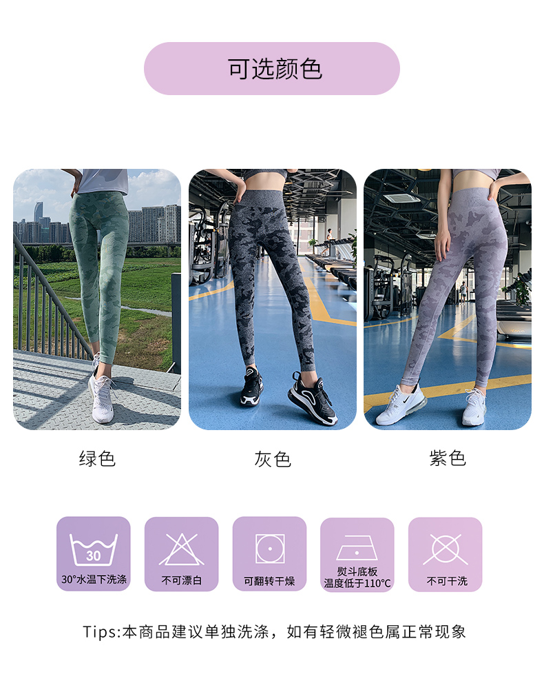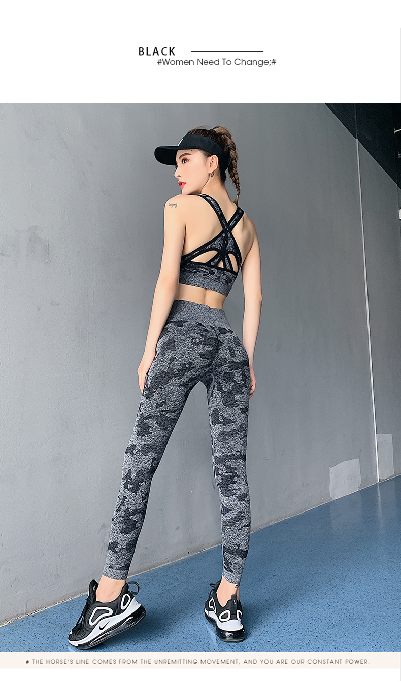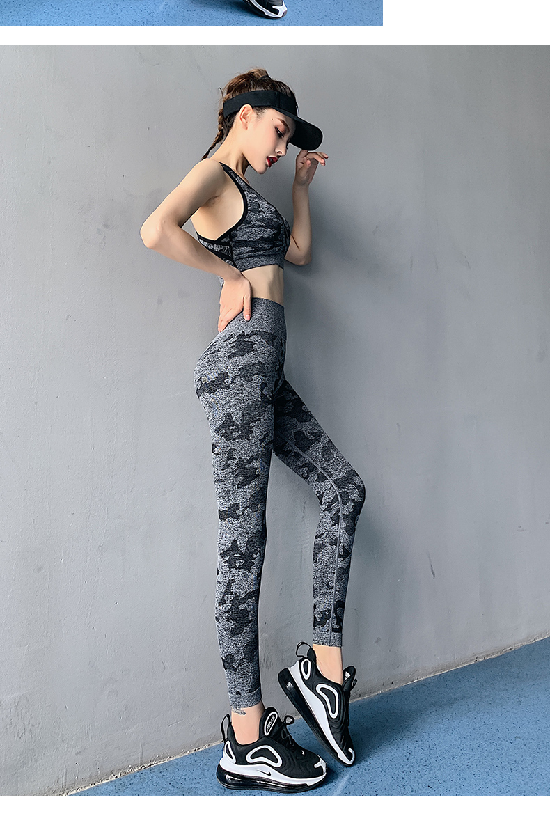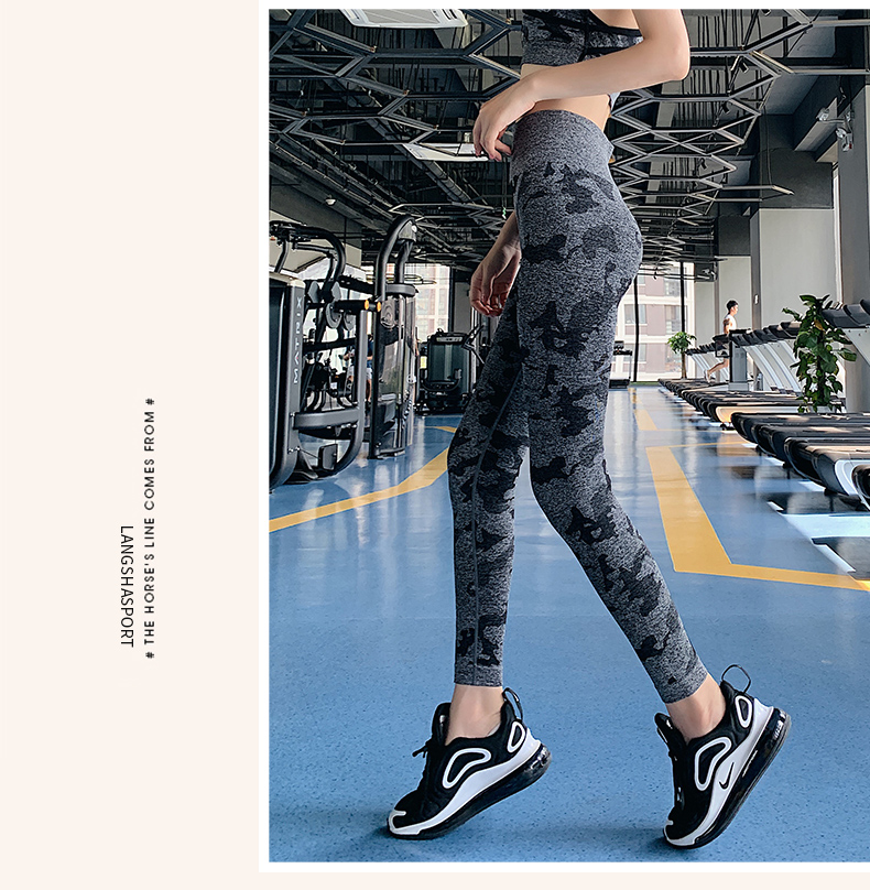 浪莎高腰健身褲女彈力緊身套裝提臀迷彩速干跑步運動收腹瑜伽褲