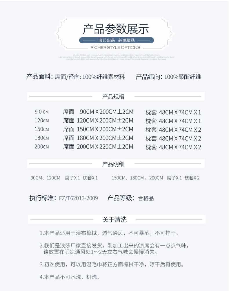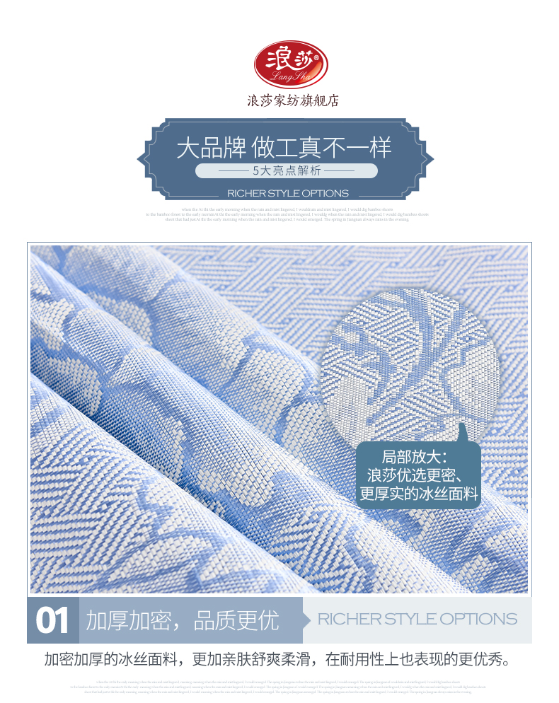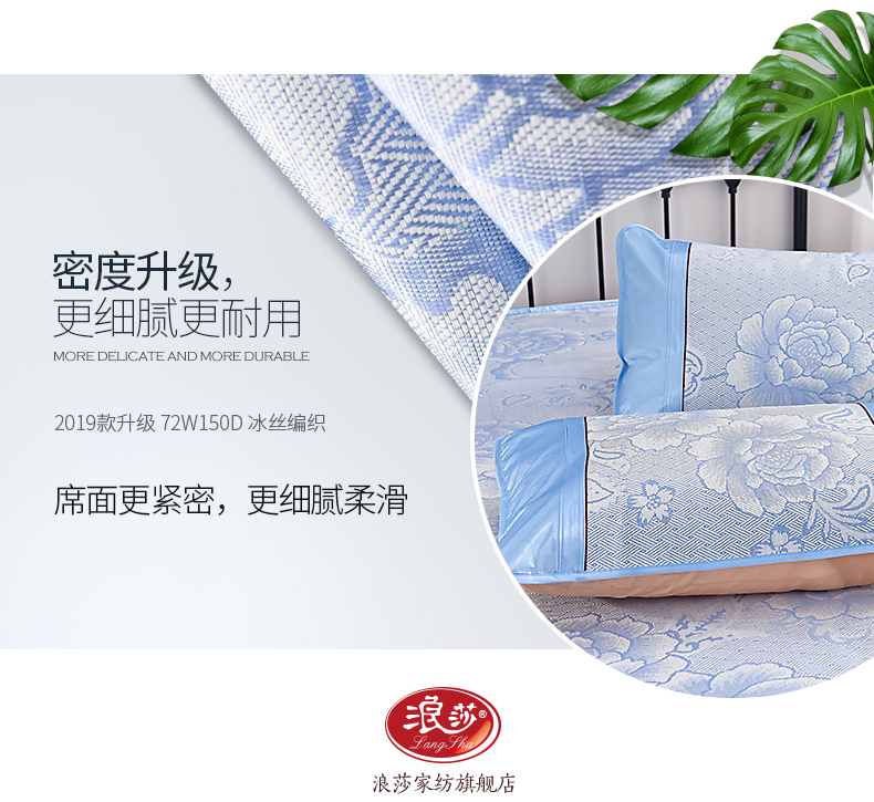 浪莎涼席冰絲席三件套1.8m床夏季1.5米折疊雙單人1.2學生宿舍席子