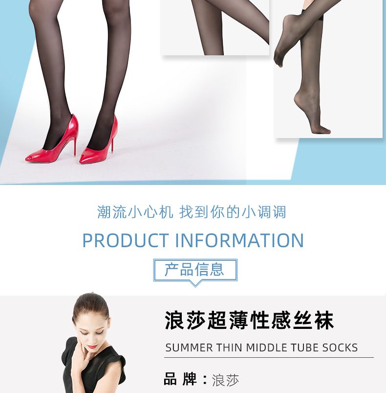 浪莎絲襪女 夏天腳尖透明中筒襪 防勾絲過膝長筒襪薄款小腿襪