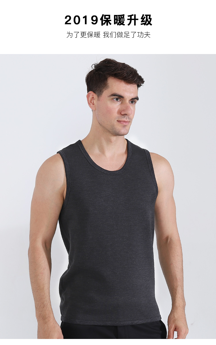 浪莎自發熱德絨保暖背心男士加厚加絨冬季上秋衣單件打底保暖內衣