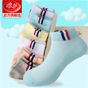 浪莎兒童襪子夏季潮薄款男童女童船襪網眼棉襪短襪3-5-7-9-12歲