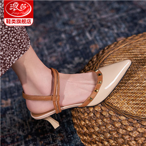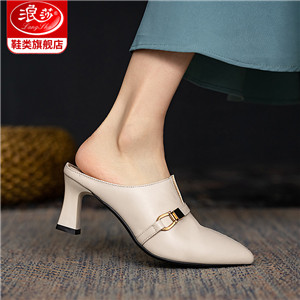 浪莎包頭半拖鞋女夏外穿2021年新款穆勒懶人高跟真皮粗跟尖頭涼拖