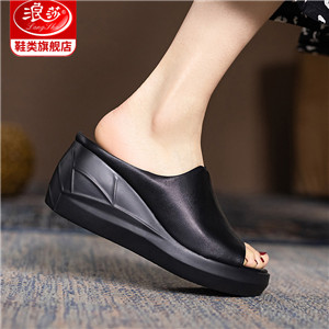 浪莎坡跟涼拖女外穿2021春新款夏天時尚高跟真皮懶人厚底魚嘴拖鞋