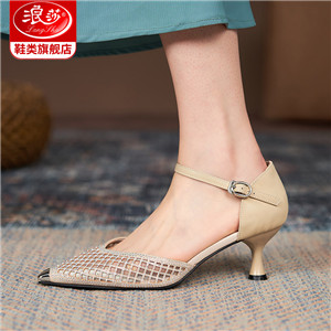 浪莎法式尖頭高跟鞋女細跟2021春夏新款深口鏤空網(wǎng)紗水鉆休閑單鞋